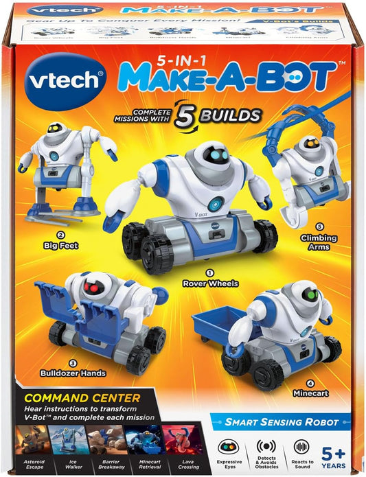 VTech Juguete robot transformable Make-a-Bot 5 en 1 con sensor de sonido y detector de obstáculos