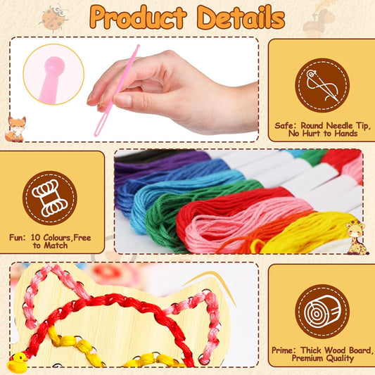 Juego de tarjetas de madera con cordones