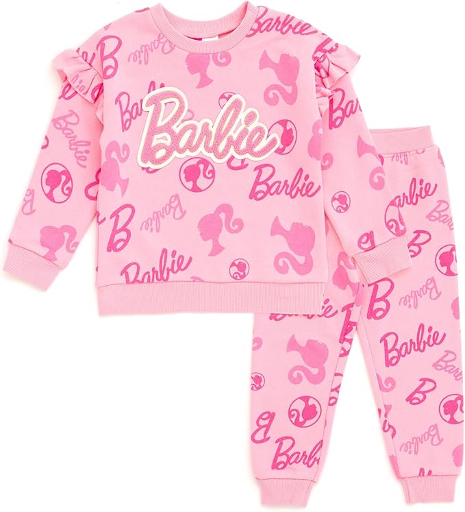 - Sudadera y pantalones gráficos de manga larga con licencia oficial de Barbie para niñas pequeñas
