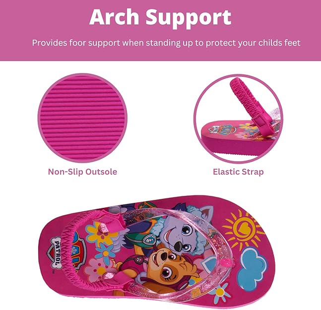 - CHANCLAS PARA NIÑOS: Los zapatos de Paw Patrol para niñas son productos de calzado para niñas con licencia oficial. Chanclas rosas de Paw Patrol para niñas, estas sandalias son ideales para cualquier fan de los personajes de Skye y Everest.