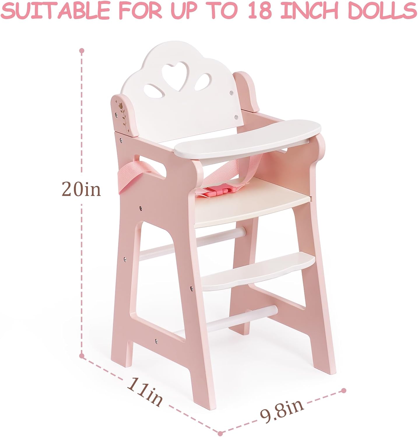 Silla alta de juego de simulación con cinturón de seguridad, se adapta a muñecas de 18 a 20 pulgadas
